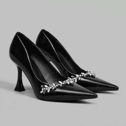 Black Beaded High-Heel Pumps