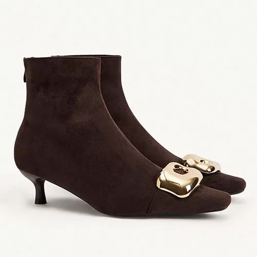 Suede Stiletto Ankle Boots with Metal Decoration